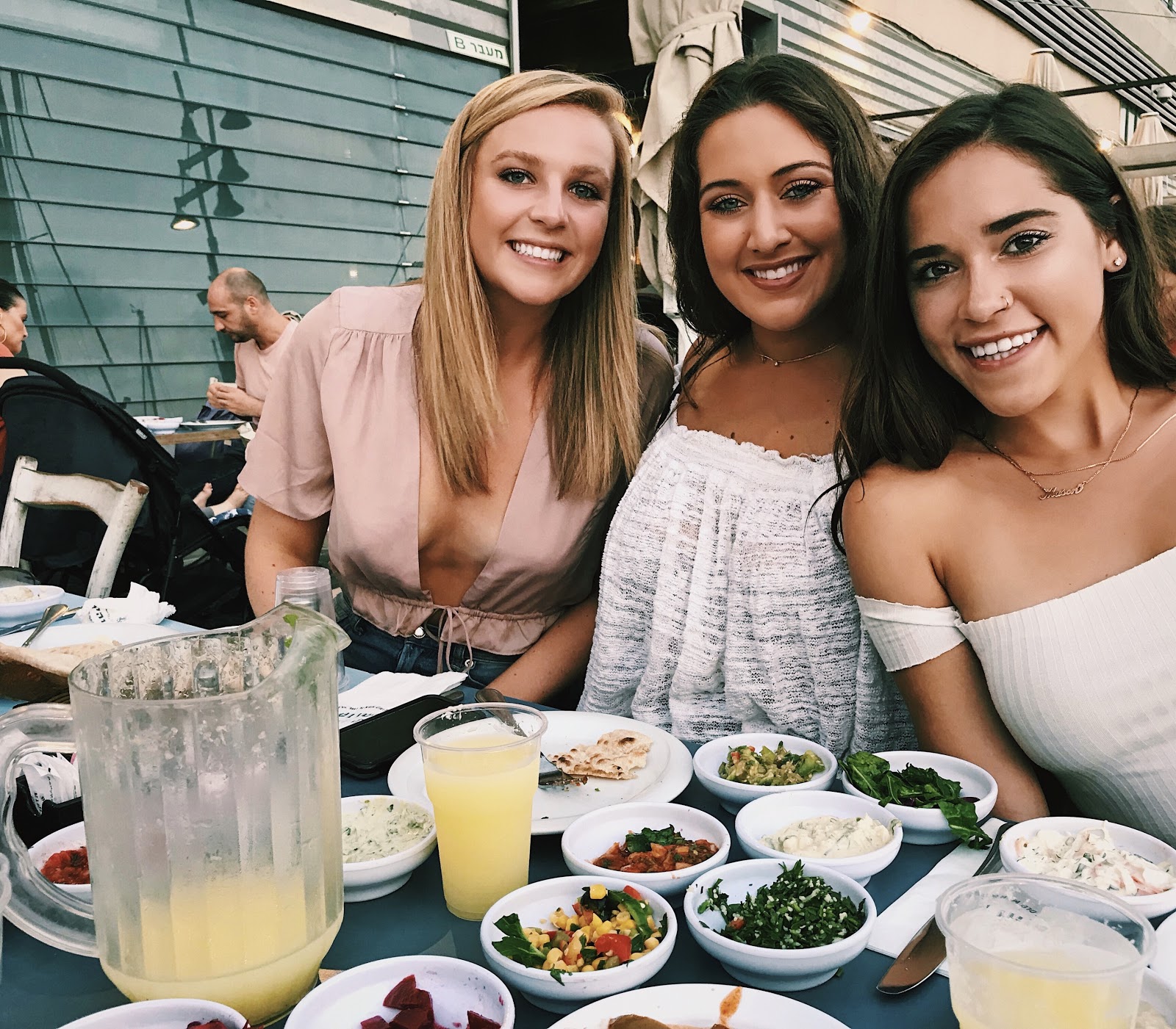 After our activities, we spent the last of our weekend relaxing in the sun on the beach. A few of us went out to dinner on Saturday night to a restaurant called the Old Man & the Sea. A restaurant right on the marina in the Jaffa Port. The restaurant is very well known in Tel Aviv for their meal deal which is twenty unlimited salads and pitas! You can also pay a little bit extra to get meat or seafood on the side of your meal. The food was delicious and the restaurant has a beautiful view! After dinner several of us were reconnected with Kali Cohen, a young woman who is also from the Cincinnati community, who made aliyah and currently lives just outside Tel Aviv. She gave us some ideas on how to spend the rest of our trip and also some tips on Tel Aviv living. It was really fun getting to see her and hear all about her experience actually living in Israel.