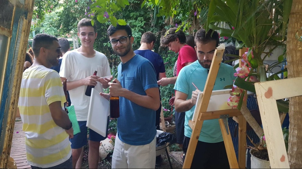 After our first four days in our respective offices, our schedule saw a change of pace. We ended work early Thursday afternoon and took a bus to Cincinnati’s Partnership2Gether city, Netanya. We were greeted by a set of local families, some of which were former Chaverim M’Israel, with music, dancing and icebreakers. All of this took place outside the home of a local artist, Mazal Kotti, who always has her door open for artists in the area that need a space to work. Mazal did the same for us and treated us to beer, wine, cheese and other snacks in her gorgeous garden. She even set up dozens of canvases throughout her property, threw out some paint for us and gave pointers and technique ideas. Some of us actually walked out with pretty decent paintings, but it was a fun time for everyone. Afterwards we split into small groups and drove off with different host families for a nice home-cooked meal.