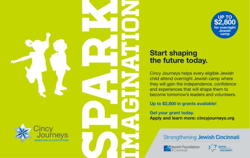 Included below, the following items are provided to help you publicize and promote Cincy Journeys' overnight Jewish camp and Israel travel grant programs: